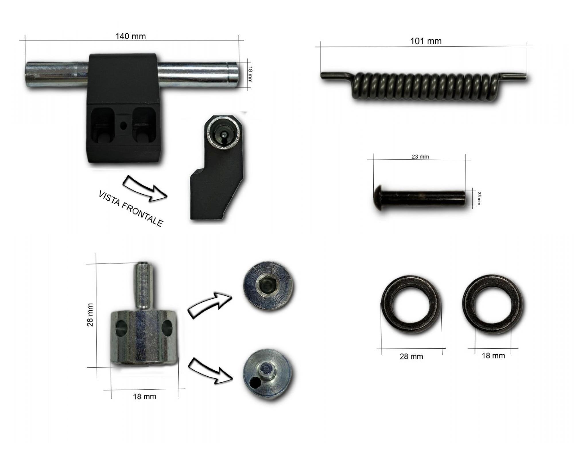 Molla di richiamo regolabile integrata nel perno
