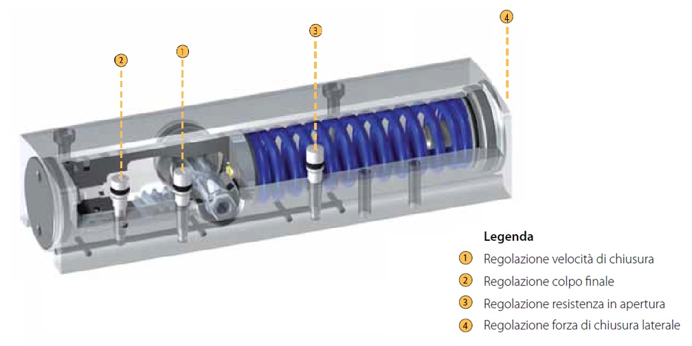 Finecorsa idraulico, che accelera la porta poco prima della posizione chiusa